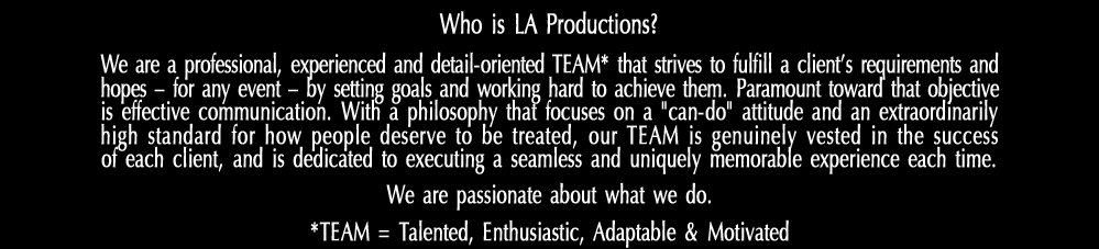 LA Productions is an all-encompassing event planning company